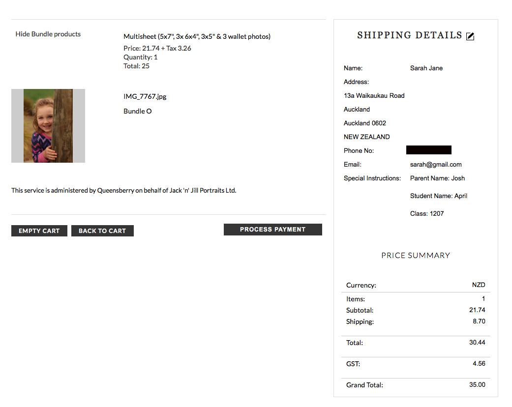 Check your order details to make sure that everything is correct. Then press ‘Process Payment’ where you will be taken to secure payment site, PayPal.